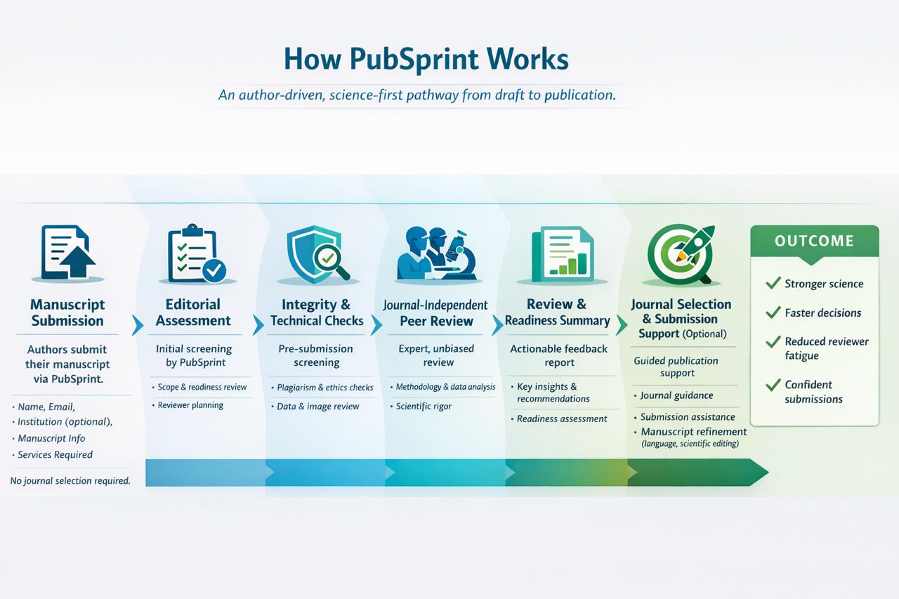 A New Era of Publishing Starts with You. PubSprint empowers researchers with integrity, quality, and faster publishing outcomes — putting you back in control. Get Started We’re Redefining How Research Moves from Draft to Publication. Through pre-submission integrity checks, expert quality review, fast-track peer review, precise journal recommendations, and submission support — PubSprint accelerates your path to acceptance. Get Started Every Author Deserves Clarity, Confidence, and Control. PubSprint is our step toward making publishing predictable, transparent, and fair — so your research gets the attention it deserves. Get Started A Better Experience for Authors — and a Stronger Ecosystem for Everyone. Integrity-vetted, review-ready manuscripts ease editorial workloads, strengthen research quality, and uplift trust across journals, institutions, and the entire scholarly community. Get Started